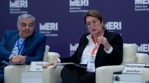 Moderated by Aniseh Tabrizi, the first session of the MERI Forum 2025 explored how the Middle East’s strategic landscape is being reshaped by shifting global hierarchies, regional ambitions, and changing external interventions. Tabrizi opened the discussion by noting that the region stands “in a chapter of war being paused but not closed,” characterized by growing fragmentation and instability, yet also by emerging opportunities for local actors to redefine their roles.